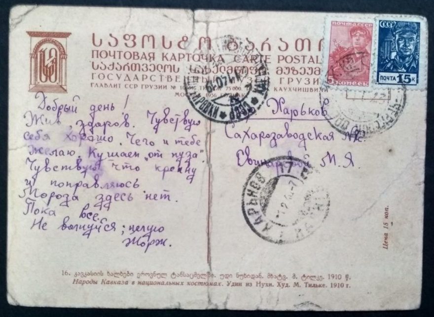 Описание открытки: Государственный музей Грузии. Главлит ССР Грузии. Цена 15 коп.