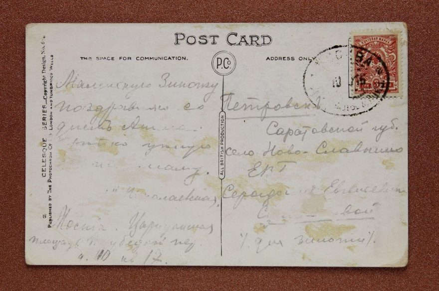 Дата отправления, штамп: 1916
