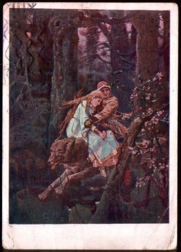 Описание картинки: В.М. Васнецов - Иван Царевич на сером волке. V. Vasnetzoff. - Le loup garou. Conte populaire.