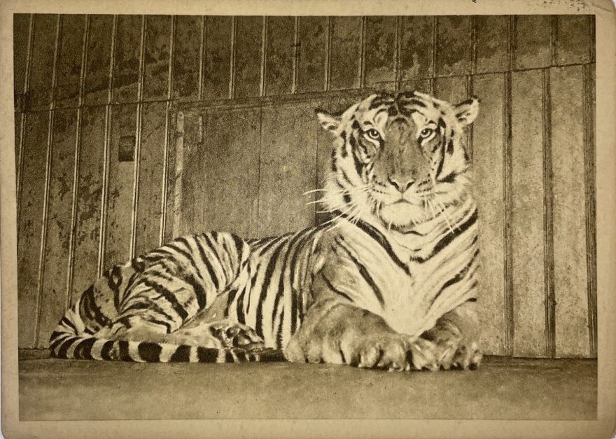 Описание картинки: Московский зоопарк. - Zooparc de Moscou. Бенгальский тигр. - Tigre du Bengale.