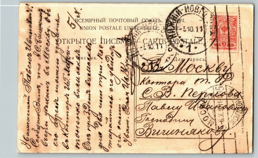 Куда: Москва, Контора т. Р. С.В. Перлова
