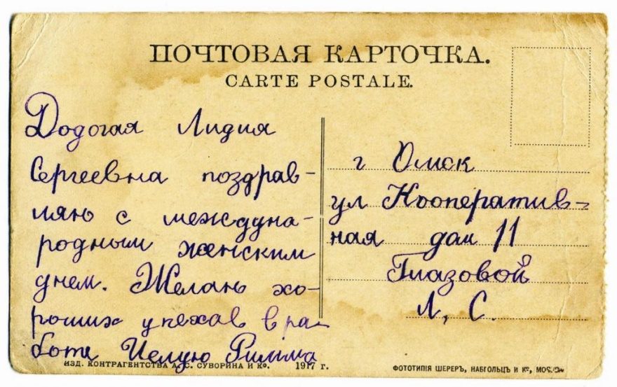 Описание открытки: Изд. Контрагенства А. С. Суворина и Ко. 1917 г. Фототипия Шерер, Набгольц и Ко, Москва