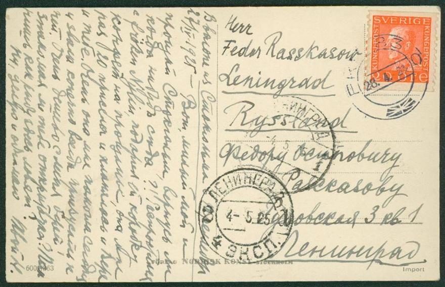 г. Стокгольм—РСФСР, г. Ленинград, 27.04.1925