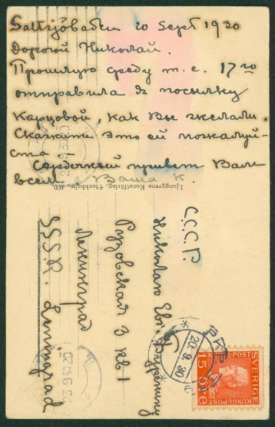 Лен Стокгольм, г. Сальтшёбаден—РСФСР, г. Ленинград, 20.09.1930