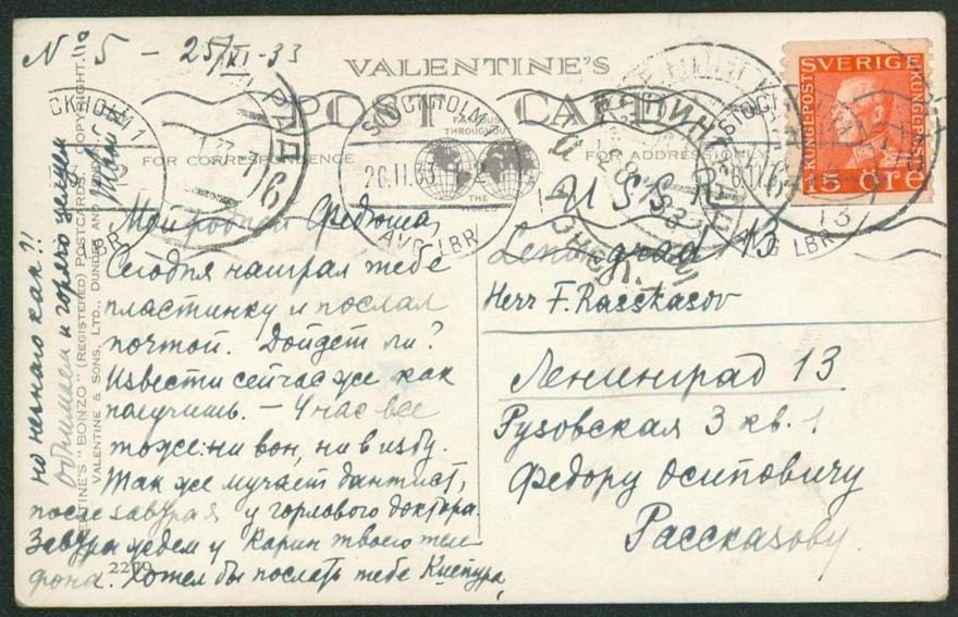 г. Стокгольм—РСФСР, г. Ленинград, 25.11.1933
