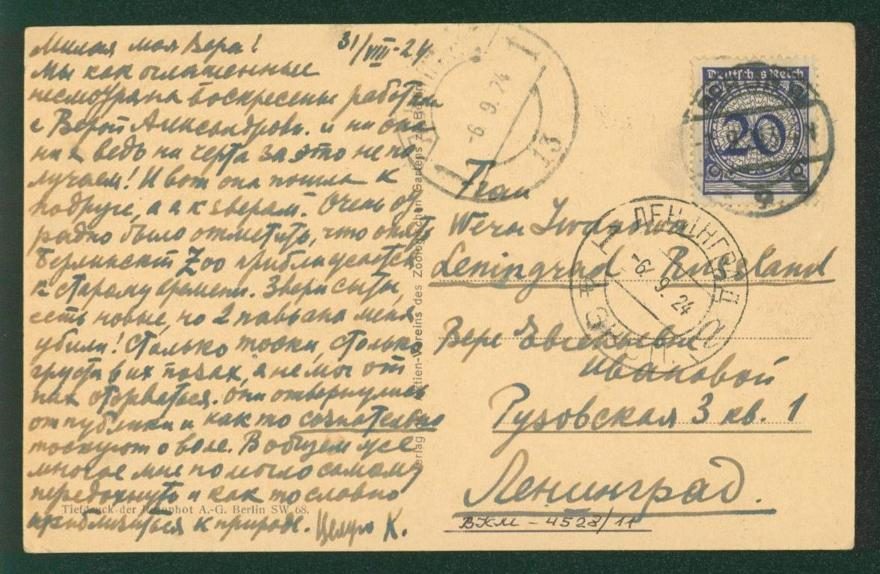 г. Берлин—РСФСР, г. Ленинград, 31.08.1924