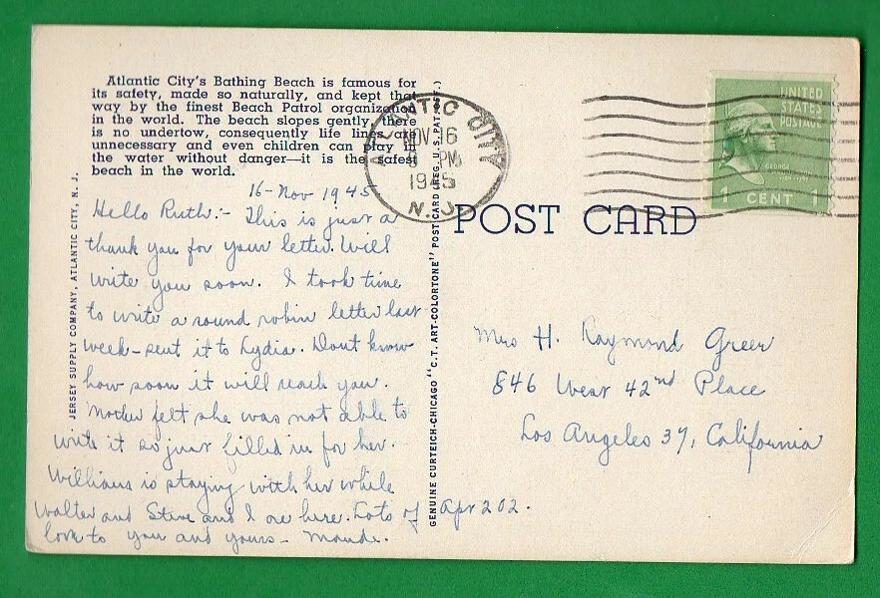 штат Нью-Джерси, город Атлантик-Сити—штат Калифорния, город Лос-Анджелес, 16.10.1945