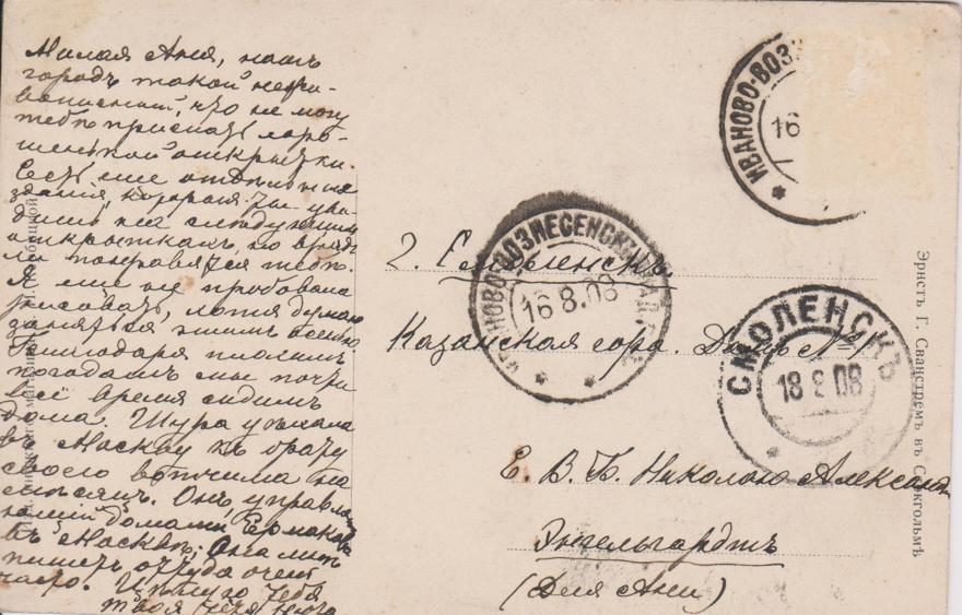 Владимирская губерния, Шуйский уезд, г. Иваново-Вознесенск—Смоленская губерния, г. Смоленск, 16.08.1908