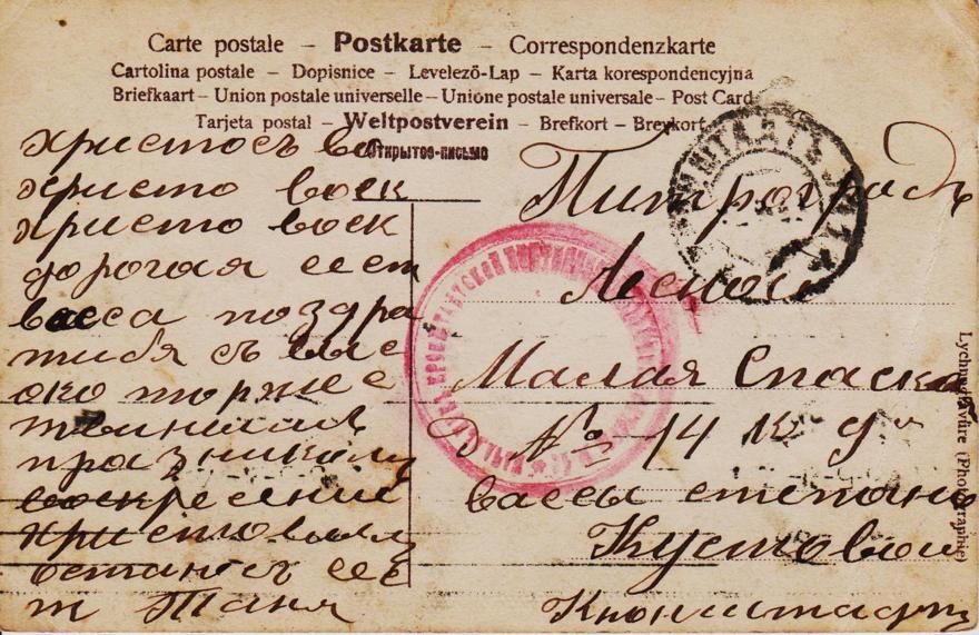 Куда: Питроград [^Петроград] Лесной Малая Спаская [^Спасская] д[ом] №14 к[вартира] 9