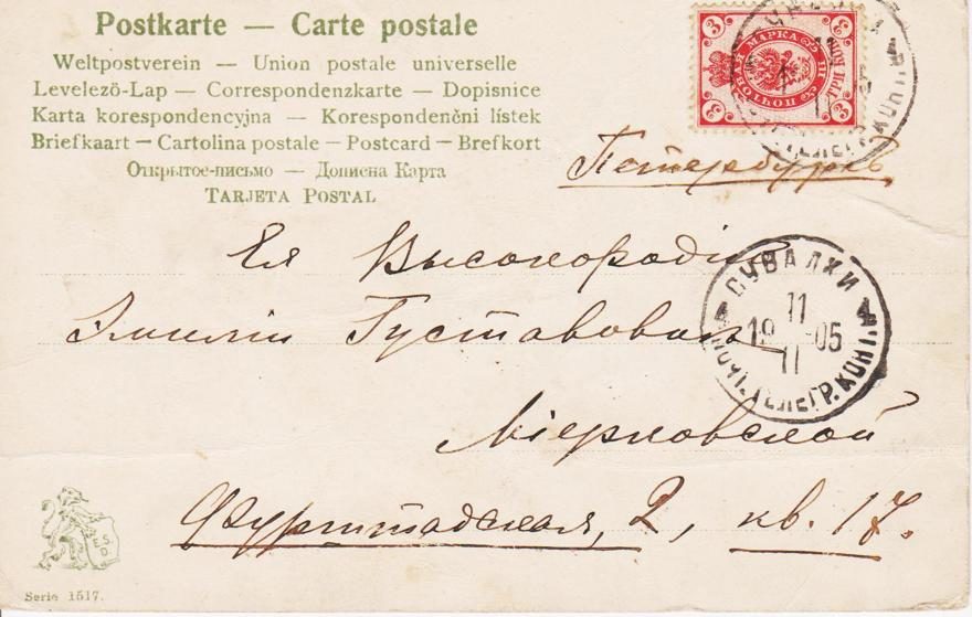Сувалкская губерния, Сувалкский уезд, г. Сувалки—г. Санкт-Петербург, 11.02.1905