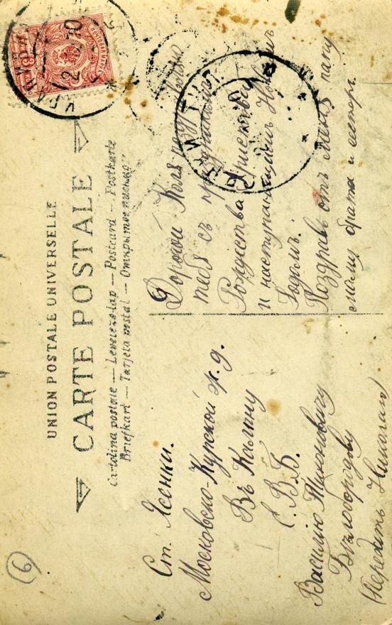 Куда: Ст[анция] Ясенки. Московско-Курской ж[елезной] д[ороги] В [?Камину]