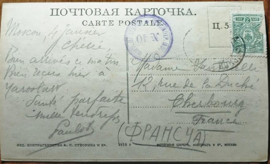 Московская губерния, Московский уезд, город Москва—Франция, департамент Манш, округ Шербур, г. Шербур, 1916