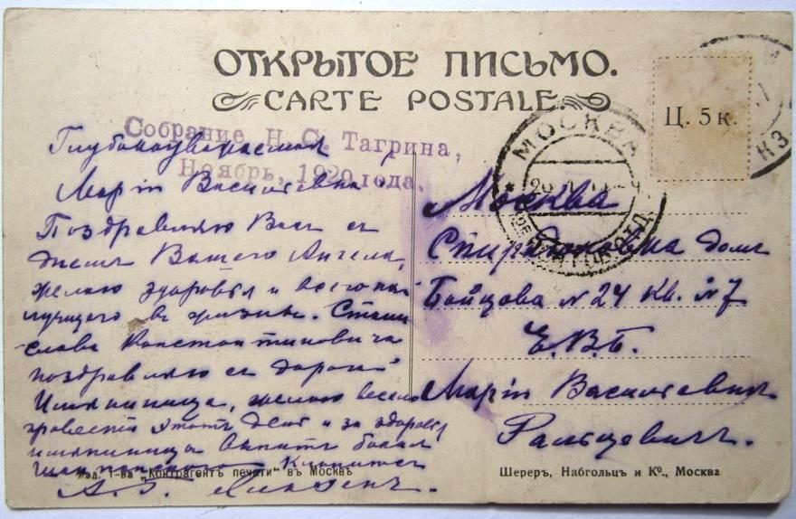 Описание открытки: Изд. Т-ва "Контрагент печати" в Москве. Шерер, Набгольц и Ко., Москва