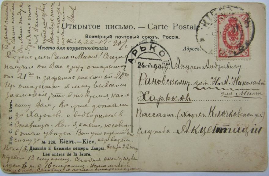 Из открытки я могу вывести заключение, что в то время, как я пишу Вам, Вы уже доехали до Харькова и водворились в Ставище. Но... я, кончено, не совсем в этом уверен! Вот уже третий день сижу за переводом.