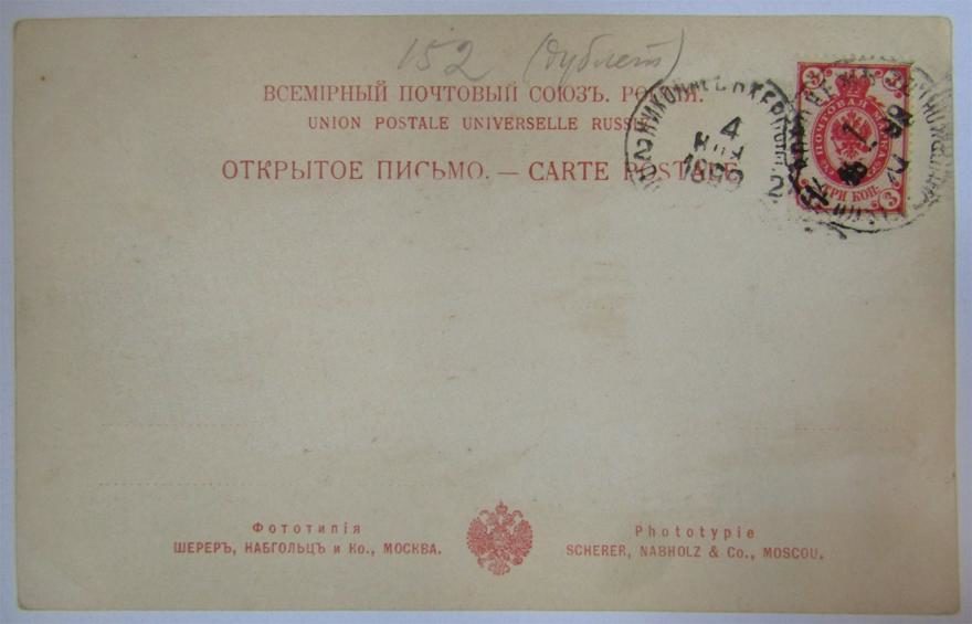 Описание открытки: Фототипия Шерер, Набгольц и Ко., МОСКВА