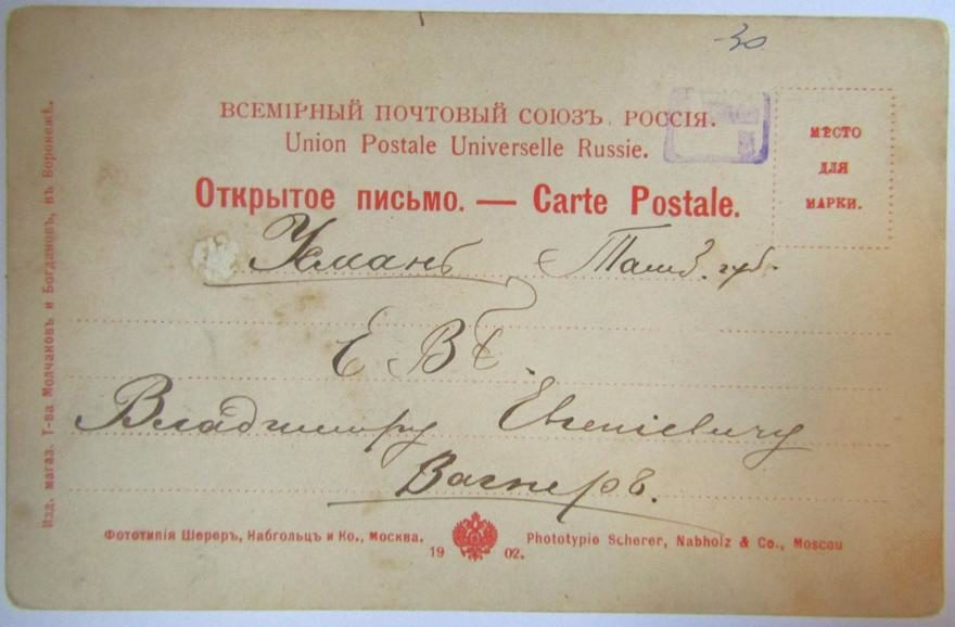 Описание открытки: Фототипия Шерер, Набгольц и Ко., г. Москва. 1902 Phototypie Scherer, Nabholz & Co., Moscou