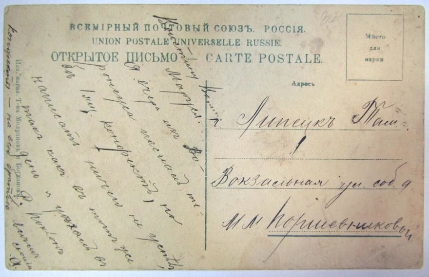 Куда: Липецк Там[бовская]. г[уберния] Вокзальная ул. соб[ственный]. д[ом]