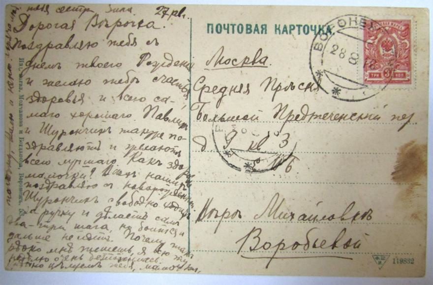 Воронежская губерния, Воронежский уезд, город Воронеж—Московская губерния, город Москва, 28.08.1916