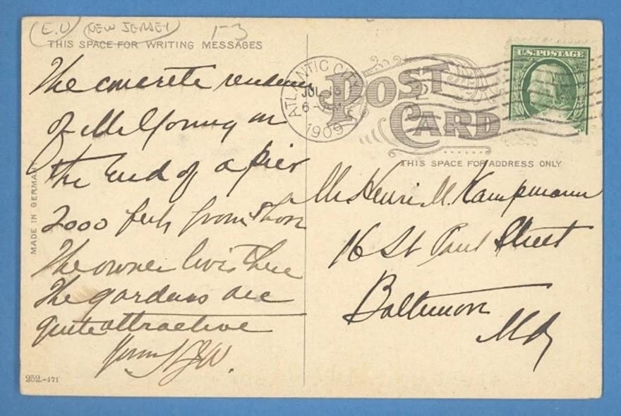 штат Нью-Джерси, город Атлантик-Сити—штат Мэриленд, г. Балтимор, 13.07.1909