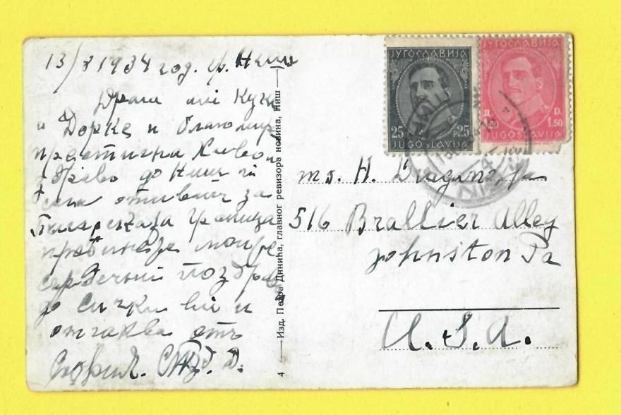Моравская бановина, г. Ниш—штат Пенсильвания, г. Джонстон, 13.08.1934