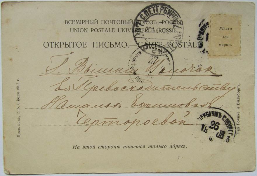 Санкт-Петербургская губерния, г. Ораниенбаум—Тверская губерния, Вышневолоцкий уезд, г. Вышний Волочек, 26.08.1908