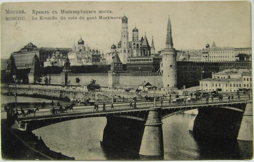 Описание картинки: Москва. Кремль с Москворецкого моста. Moscou. Le Kremlin du cote du pont Moskworetzk