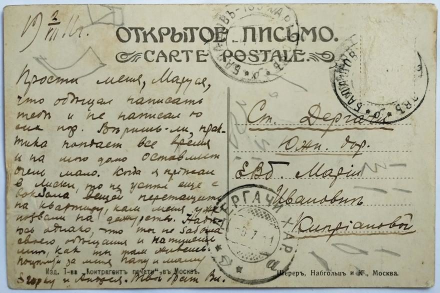Описание открытки: Изд. Т-ва "Контрагент печати" в Москве. Шерер, Набгольц и Ко., Москва