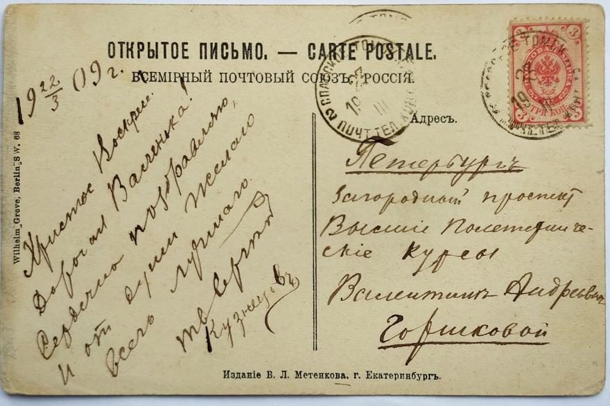 Дата отправления, штамп: 23 марта 1909