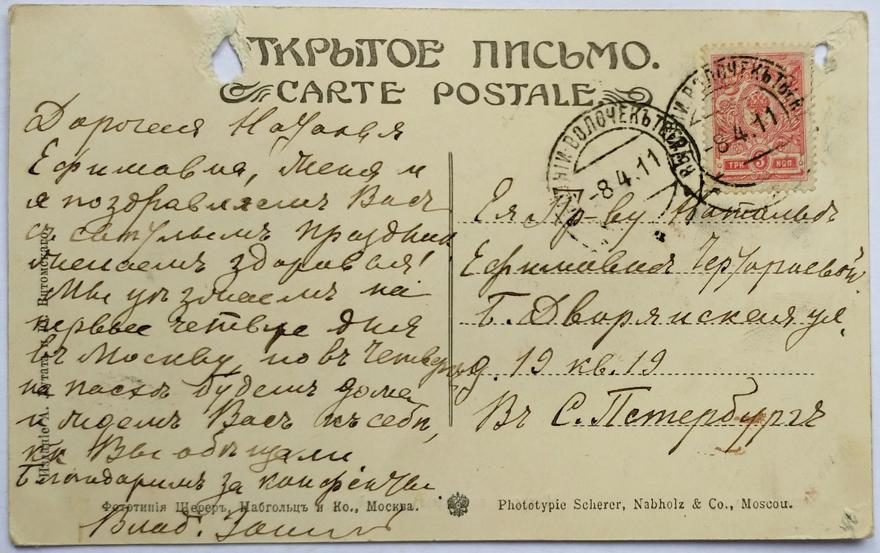 Тверская губерния, Вышневолоцкий уезд, г. Вышний Волочек—г. Санкт-Петербург, 08.04.1911