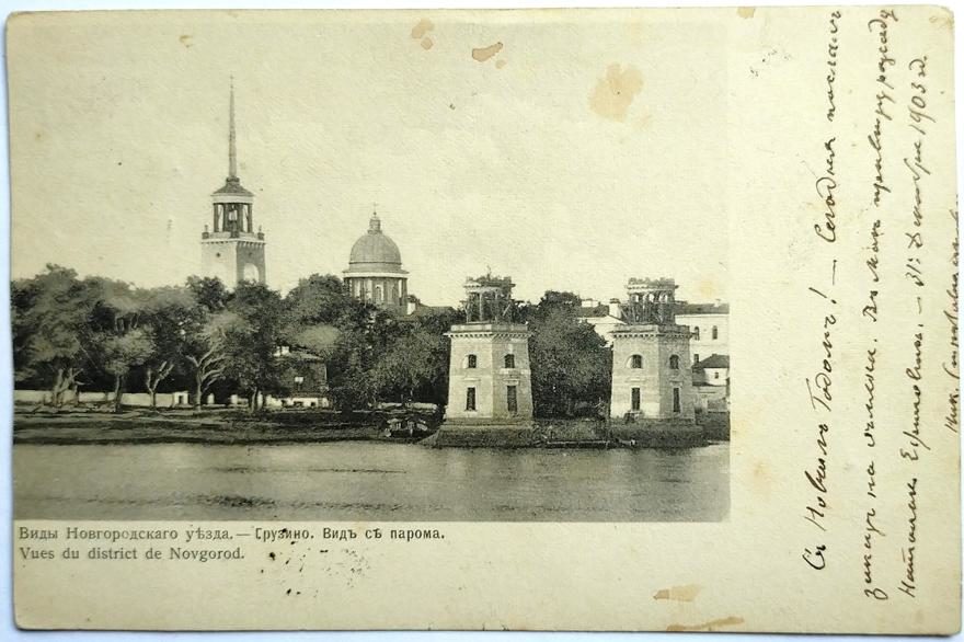 Описание картинки: Виды Новгородского уезда - Срузино. Вид с парома. Vues du district de Novgorod.