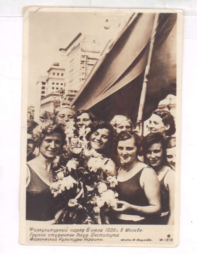 Описание картинки: Физкультурный парад 6 июля 1935 г. в Москве. Группа студенток Госуд. Института Физической Культуры Украины. Фото М. Маркова