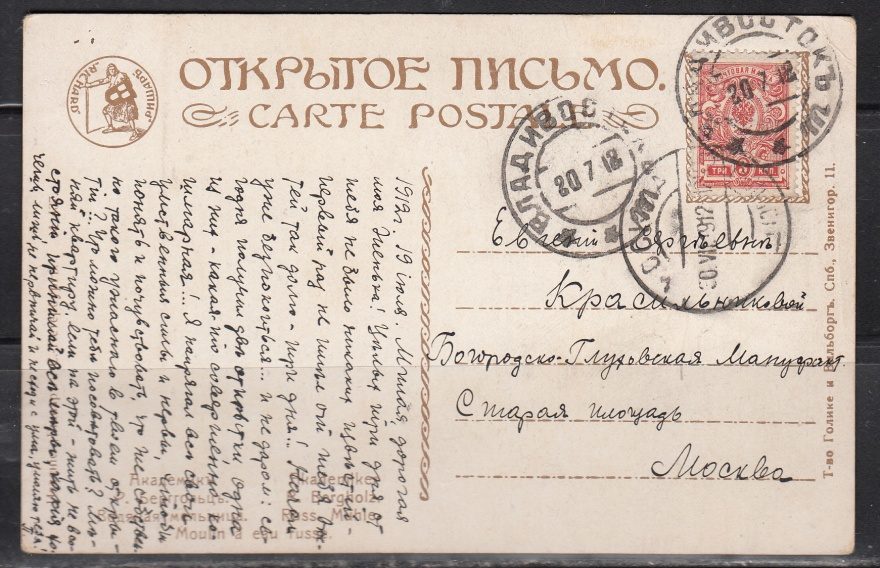 Дата отправления, штамп: 20 июля 1912