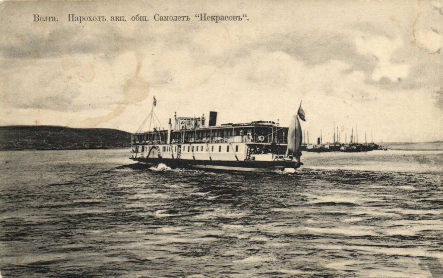 Описание картинки: Волга. Пароход акц. общ. Самолет "Некрасов".