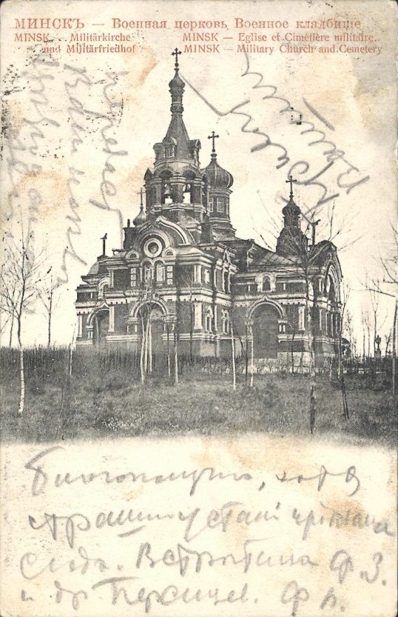 Описание картинки: Минск - Военная церковь. Военное кладбище. Minsk Militärkirche und Militärfriedof MINSK - Eglise et Cimetiere militaire. MINSK - Military Church and Cemetery
