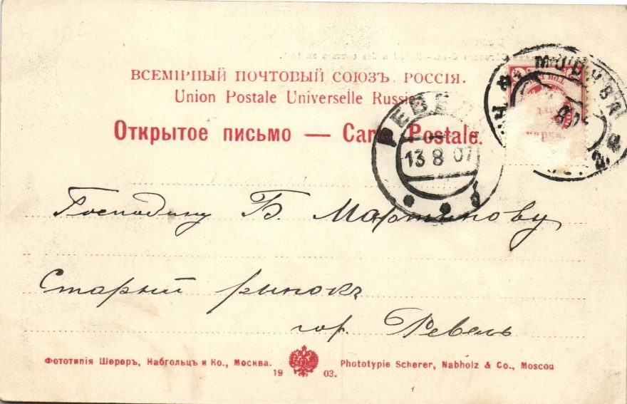 Описание открытки: Фототипiя Шерер, Набгольц и Ко., Москва 1903 Phototypie Scherer, Nabholz & Co., Moscou