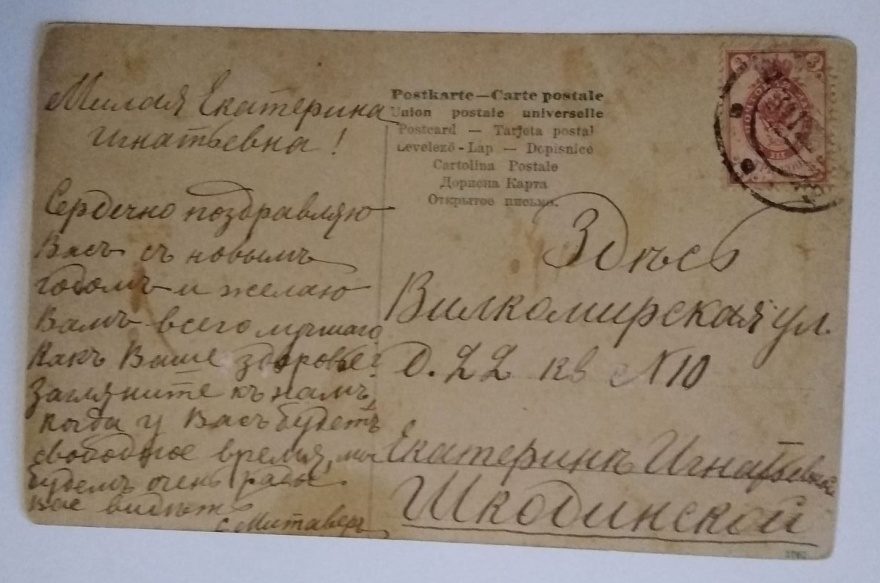 Милая Екатерина Игнатьевна! Сердечно поздравляю Вас с новым годом и желаю Вам всего лучшего. Как Ваше крепкое здоровье? Загляните к нам когда у Вас будет свободное время, мы будет очень рады Вас видеть. С. Митаверь
