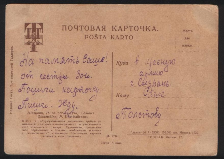 Описание открытки: Издание госуд. Третьяковской Галереи, 8 коп