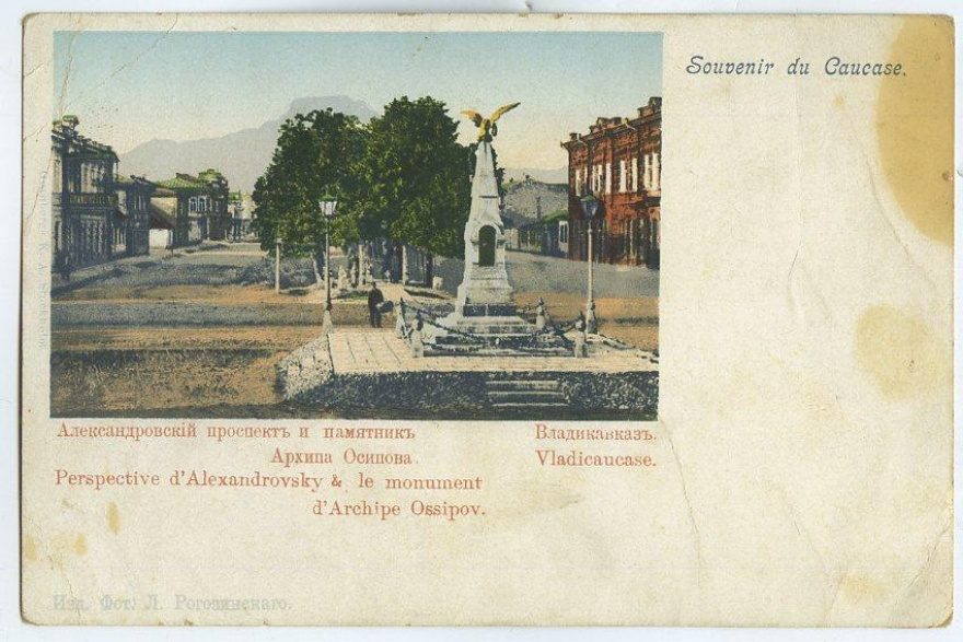 Описание картинки: Souvenir du Caucase. Александровский проспект и памятник Архипа Осипова. Владикавказ.