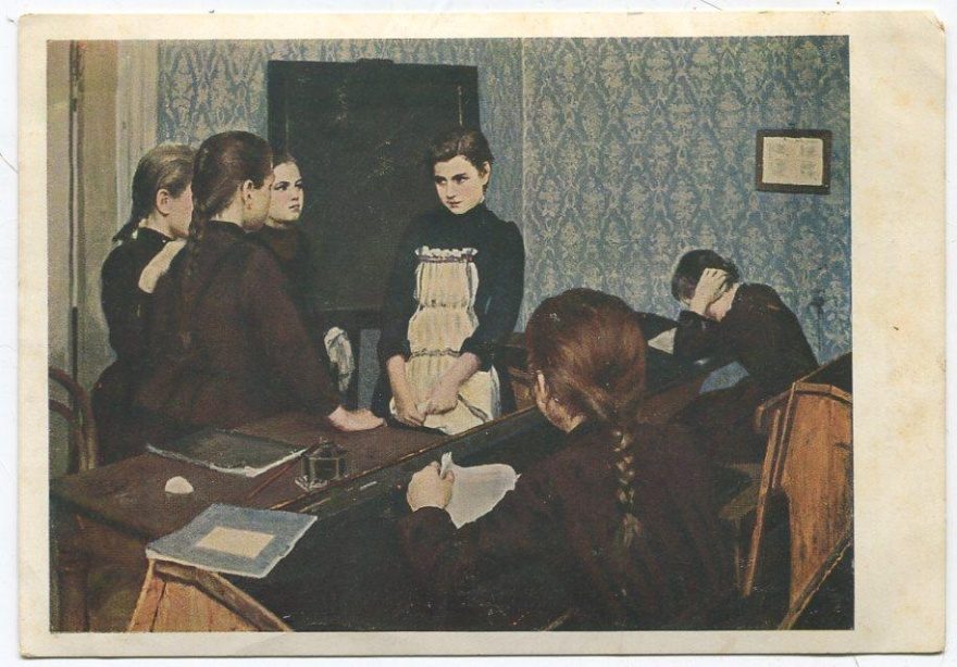 Описание картинки: Э. Я. Шанкс. Новенькая в школе (1892).