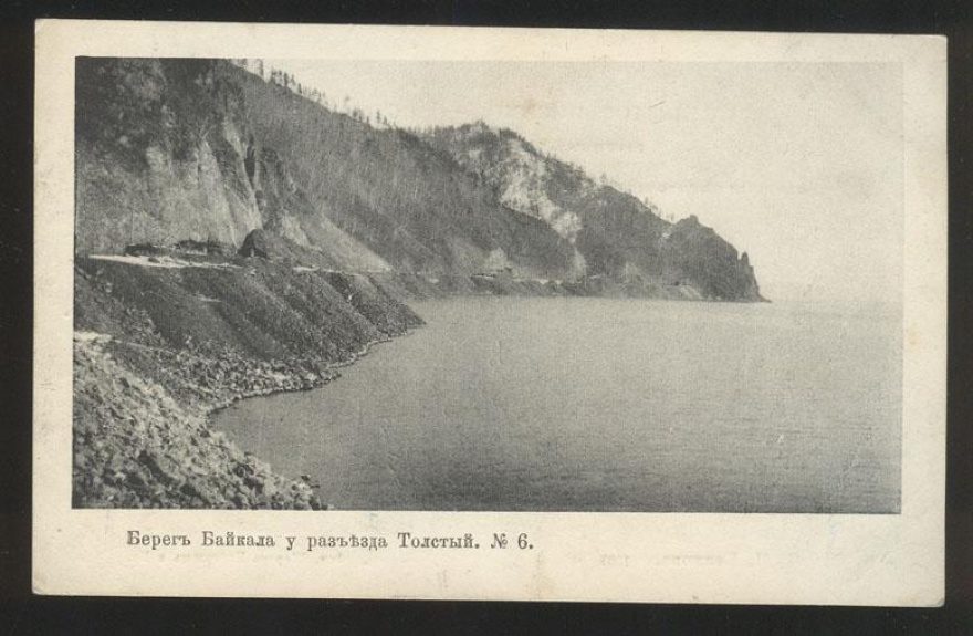 Описание картинки: Берег Байкала у разъезда Толстый.