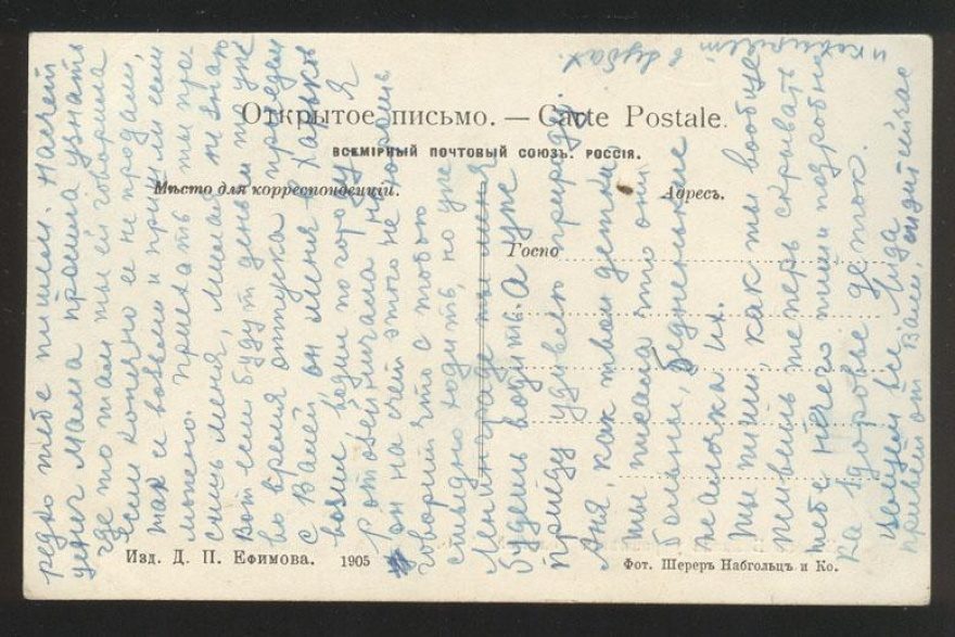 Описание открытки: Изд. Д. П. Ефимова. 1905 Фот. Шерер Набгольц и Ко.
