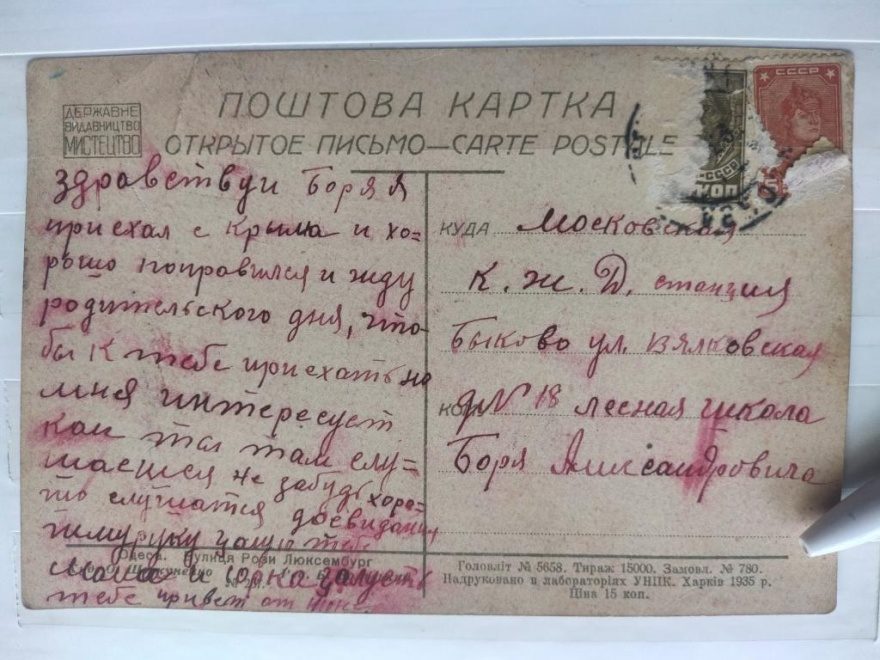 Описание открытки: Головлит № 5658. Тираж 15000. Замовл. № 780. Надруковано в лабораториях УНПК. Харьков 1935 р. Цена 15 коп.