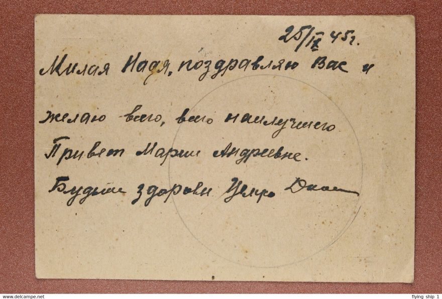25/IX 45 г. Милая Надя, поздравляю Вас и Желаю всего, всего наилучшего Привет Марии Андреевне. Будьте здоровы Целую