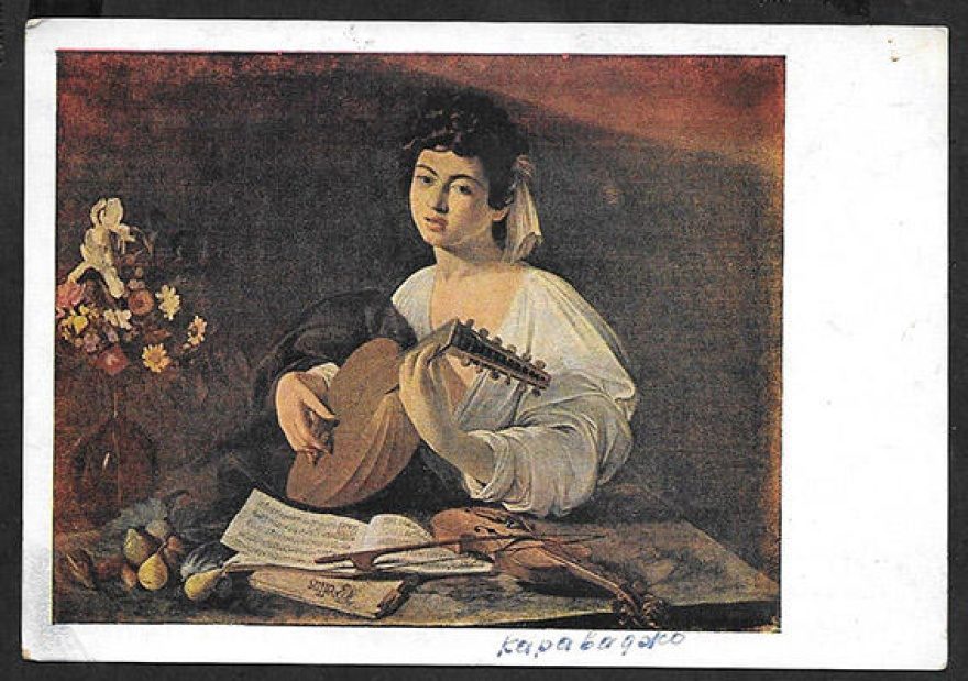 Описание картинки: {Караваджо} Микельанджело да Караваджо (ок. 1567-1609) Мандолинистка Гос. Эрмитаж Редактор З. Л. Докторов
