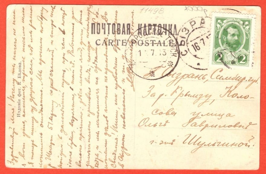 Куда: г.Сызрань, Симбир[ская] губ[ерния] За р[еку] Крымзу, Колосова улица