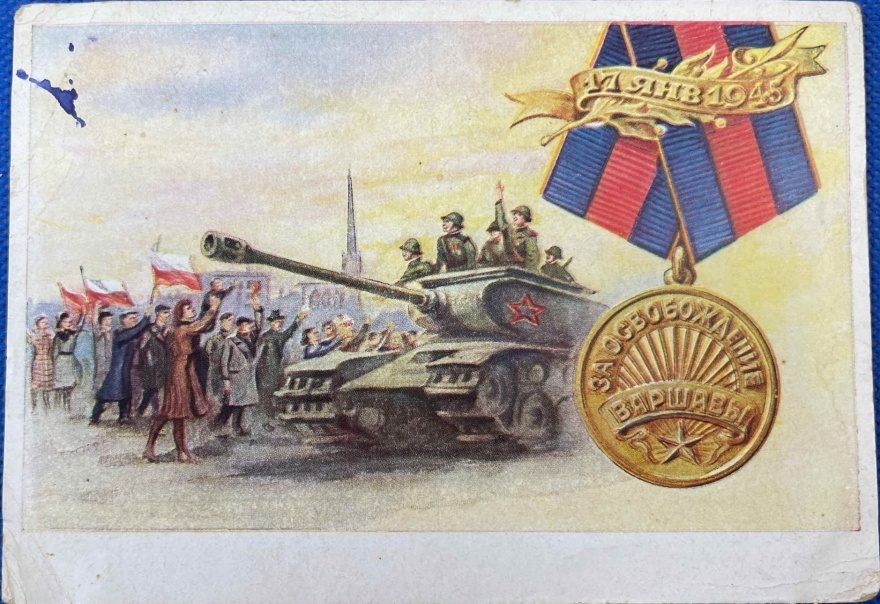 Описание картинки: 17 января 1945 «‎За освобождение Варшавы»‎. Художник А. Щербаков За нашу Советскую Родину!
