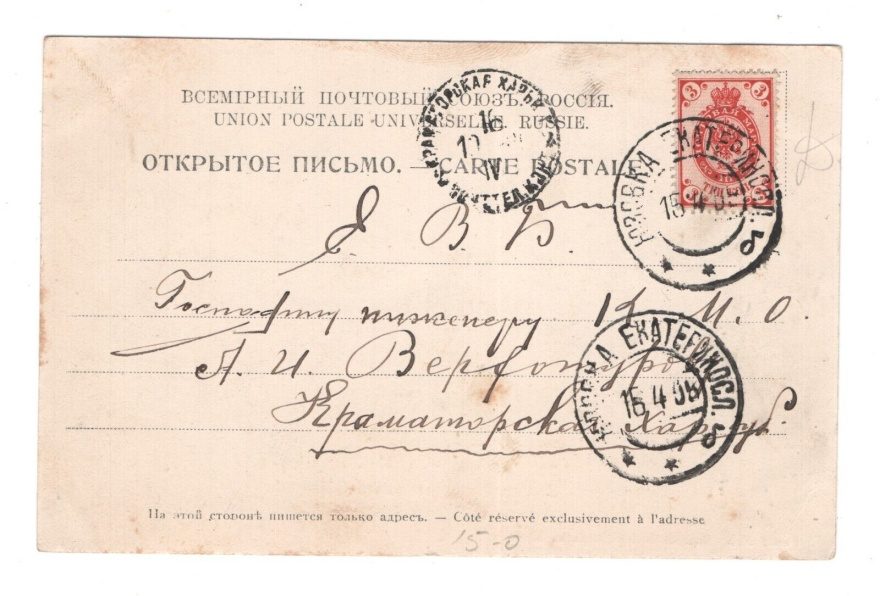 Дата отправления, штамп: 15 апреля 1909