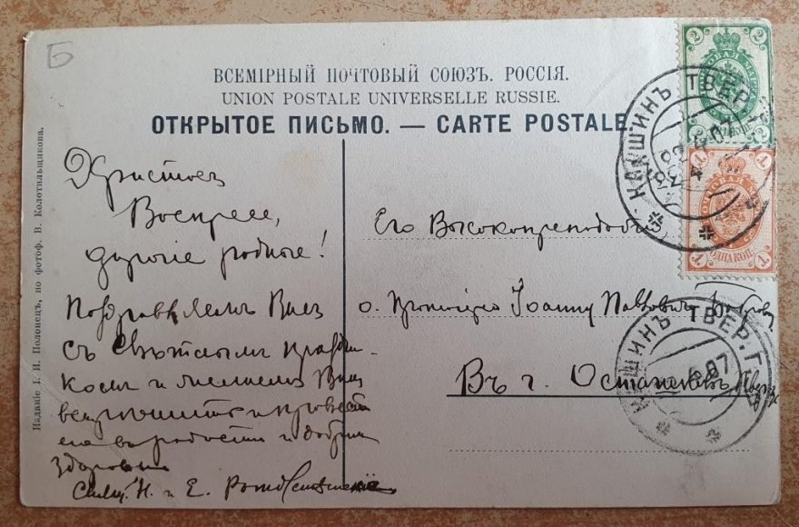 Получатель: [?протоиерей] Ионанн Павлович [?Бобров]
