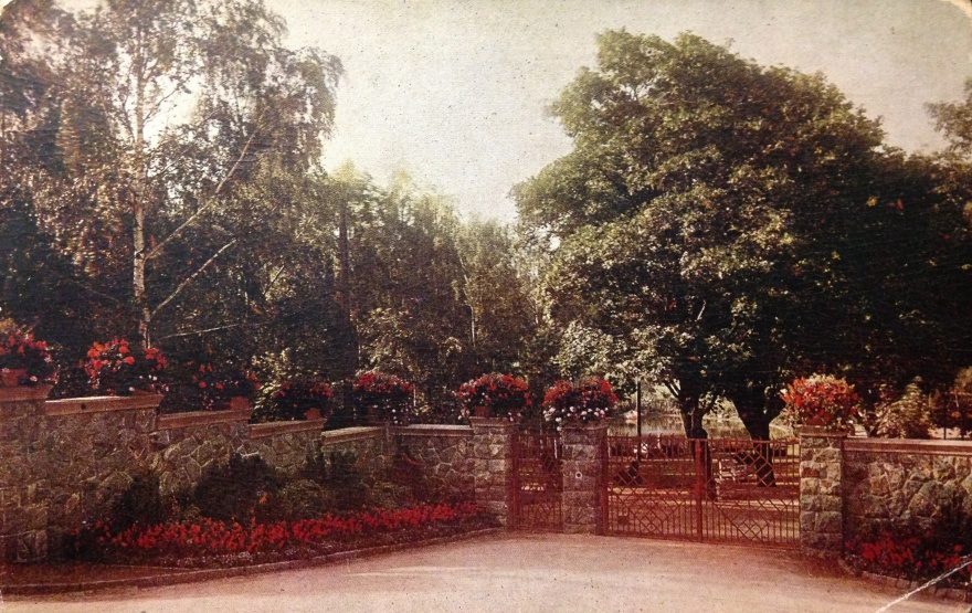 Описание открытки: Открытка немецкого издателя и фотографа из города Дрезден - Alexander Paul Walther, с изображением входа в один из парков вокруг санатория в местечке Kötzschenbroda - Zitzschewig (ближайший пригород Дрездена).