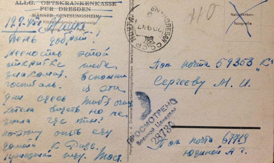 Дата отправления, штамп: 20 сентября 1945
